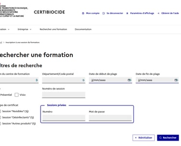 Exemple: Si la formation de certibiocide désinfectants choisie est le 19/06, je dois valider ma session avant le 03 juin, et sous réserve de place disponible.