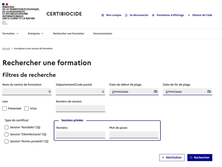 Le certibiocide étant INDIVIDUEL, chaque stagiaire doit créer un compte "CERBERE" sur le site du Ministère en charge de l'Ecologie : https://certibiocide.din.developpement-durable.gouv.fr/